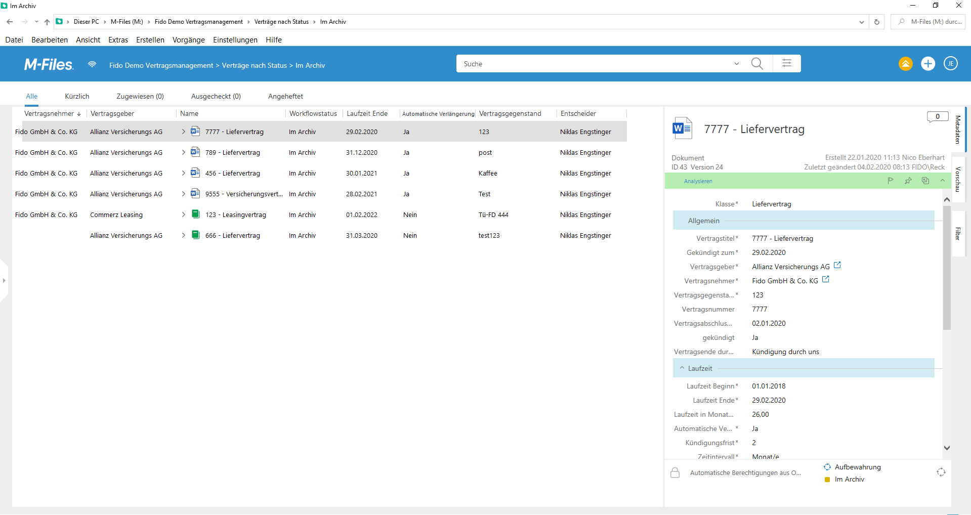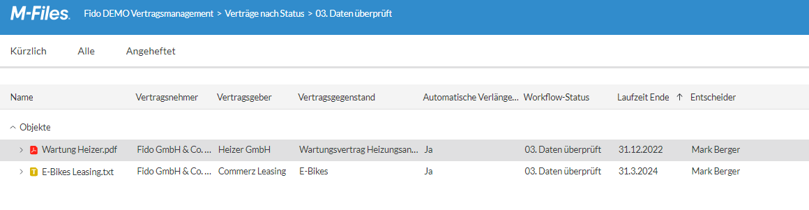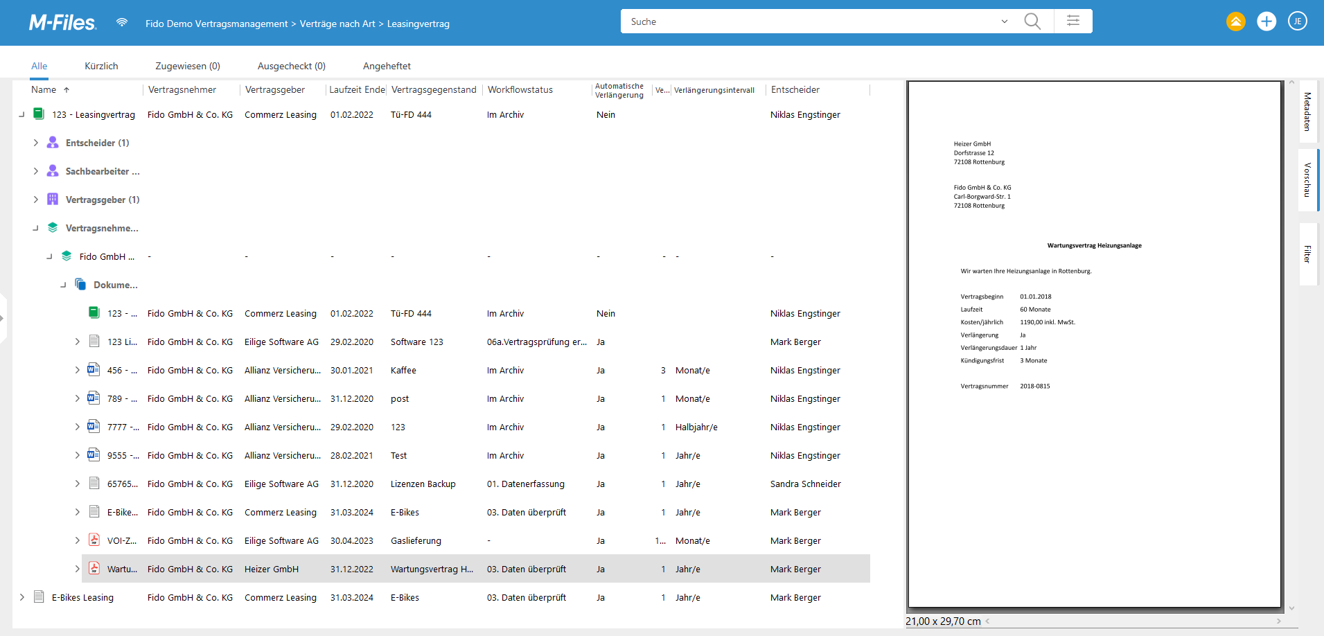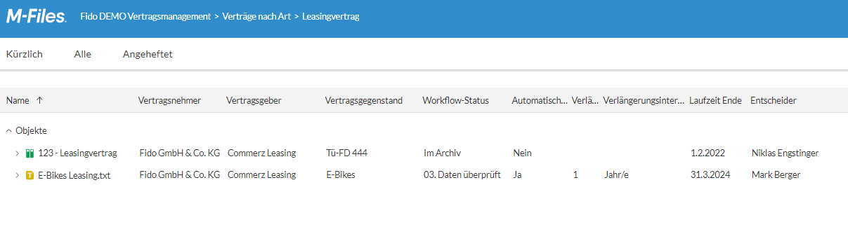 - Suche und Abfrage:: Erweiterte Suchfunktionen und flexible Ansichten sorgen für einen schnellen Abruf von Verträgen.