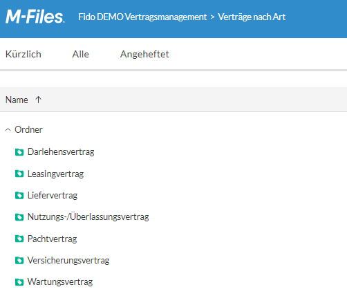 Verwalten Sie die Verträge Ihrer Organisation klug mit Hilfe von M-Files, der einzigen umfassenden Dokumentenverwaltungslösung, die auf einer reellen metadatenbasierten Architektur aufbaut. Inbegriffen sind dabei die sichere metadatenbasierte Zugriffsrecht- und Dateiverwaltung. M-Files verfügt darüber hinaus über ein automatisches Prüf- und Annahmeverfahren, Versionenkontrolle, Benachrichtigungen und Alarme für Schlüsselmeilensteie und Vertragsdaten, sowie integrierten Support für das Scannen von Verträgen und OCR zur Erstellung von durchsuchbaren PDFs.