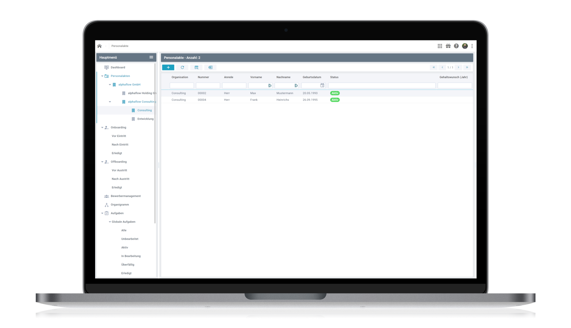 Alle Daten von Mitarbeitern an einem Ort zur Einsicht oder Auswertung
