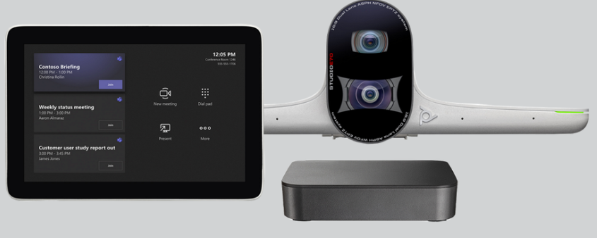 Das Poly Room Kit Large ist der Allrounder unter den Konferenz- und Meetingwebcams. Dank der intelligenten Poly Studio E70 Kamera lassen sich große Ideen in große Konferenzräume umsetzen.