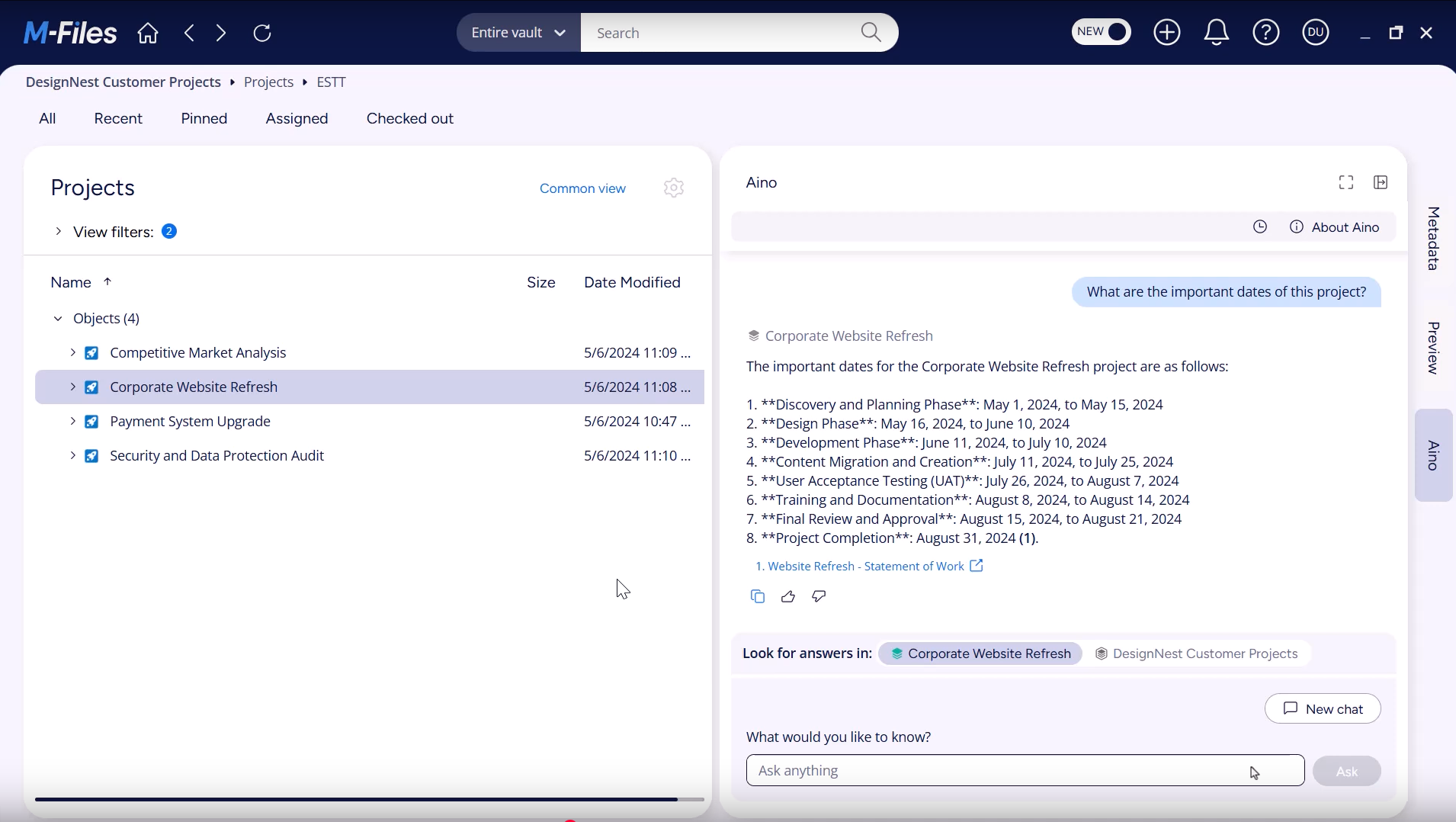 Erleben Sie, wie M-Files Aino Ihre tägliche Arbeit erleichtert und Ihr Dokumentenmanagement auf das nächste Level hebt.